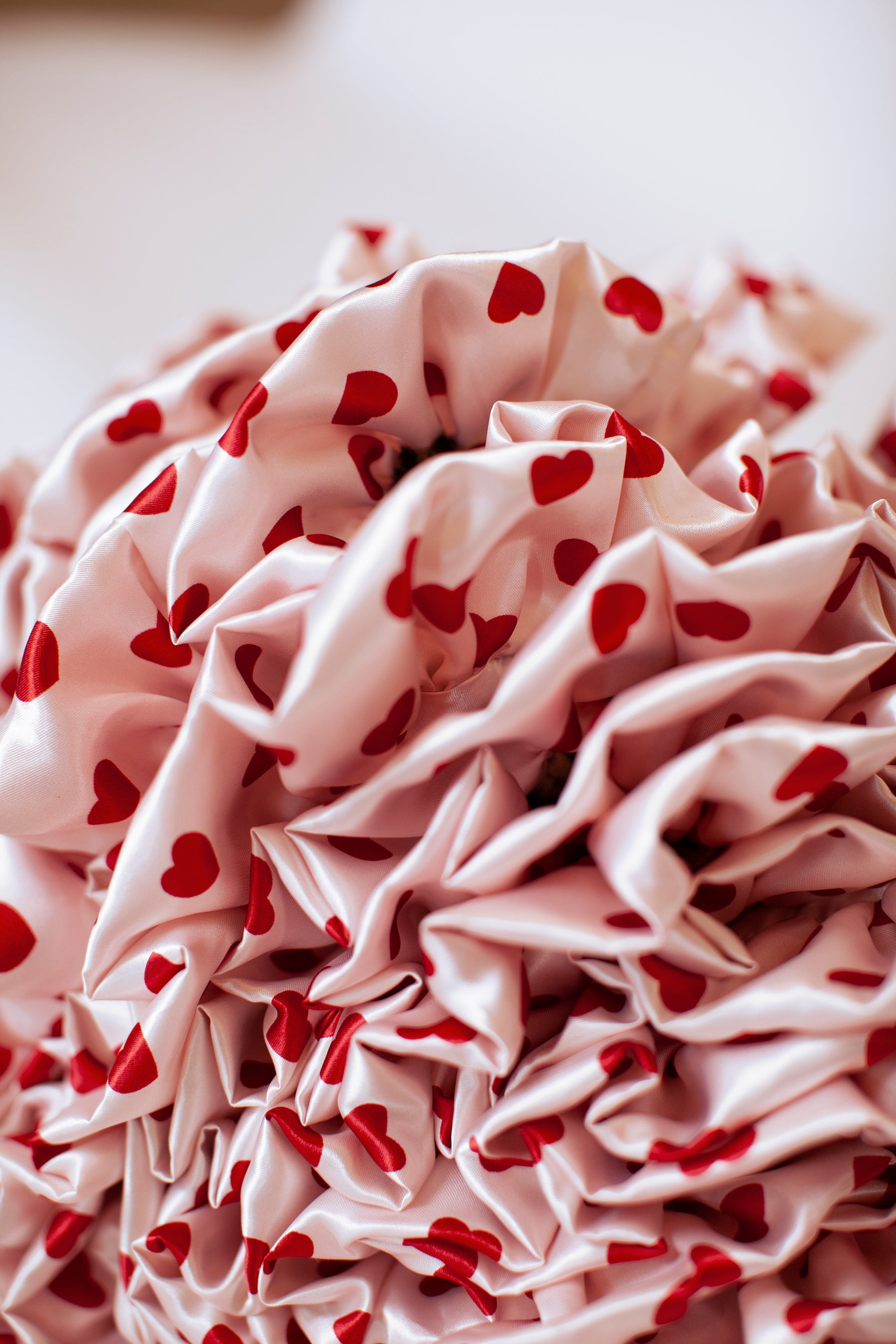 Features plush Unicorn minky with ruffled heart satin trim