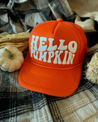 Hello Pumpkin Fall Trucker Hat – Women’s 3D Puff Mesh Cap