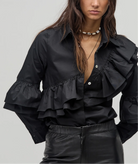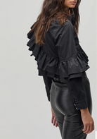 Mambo Poplin Shirt - Black Ruffled Blouse