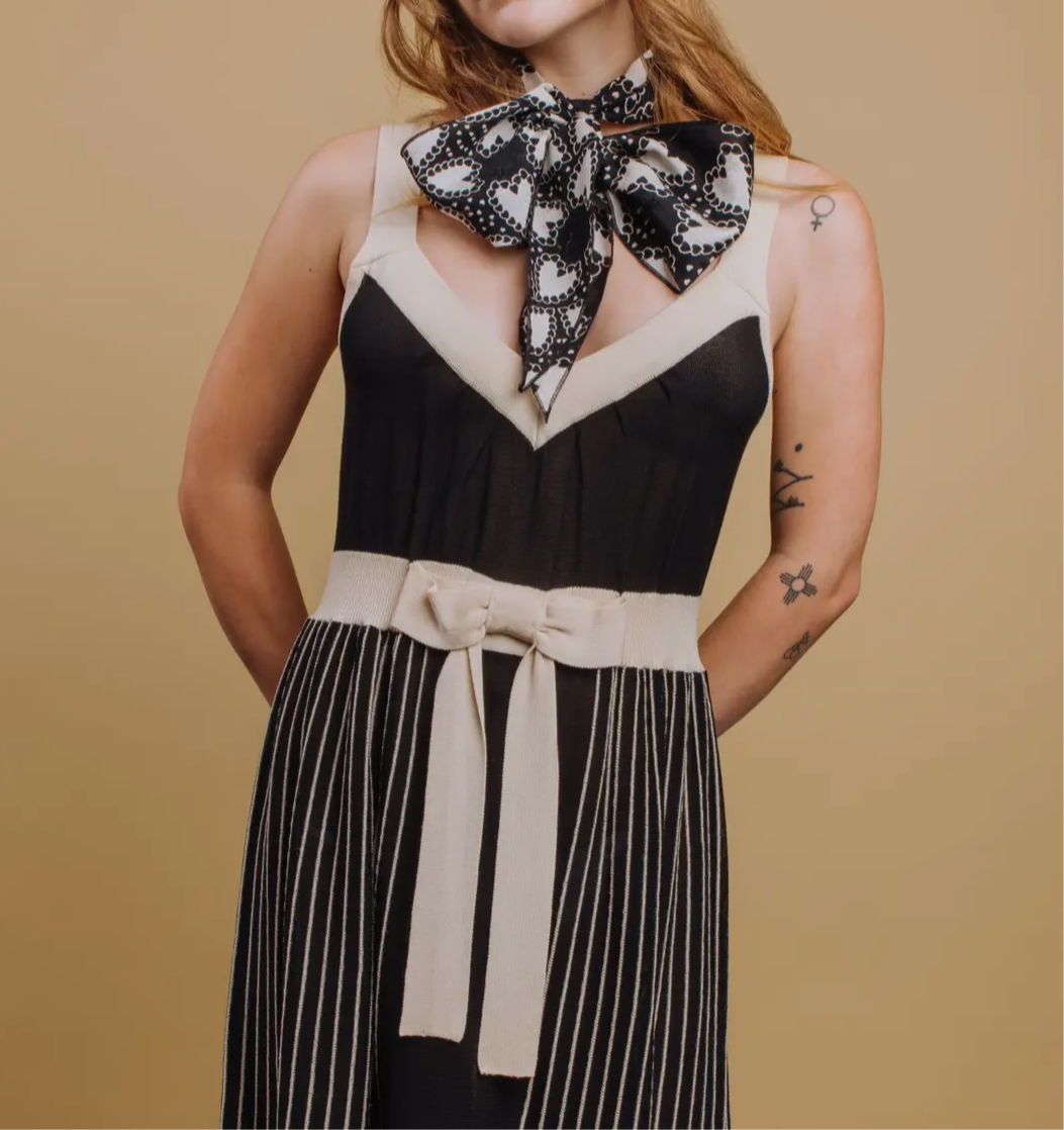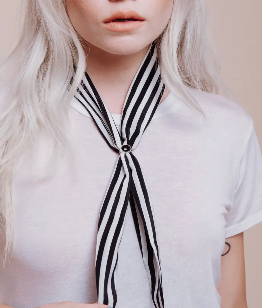 Silk Scarf Tie – Black & White Vintage Style scarf