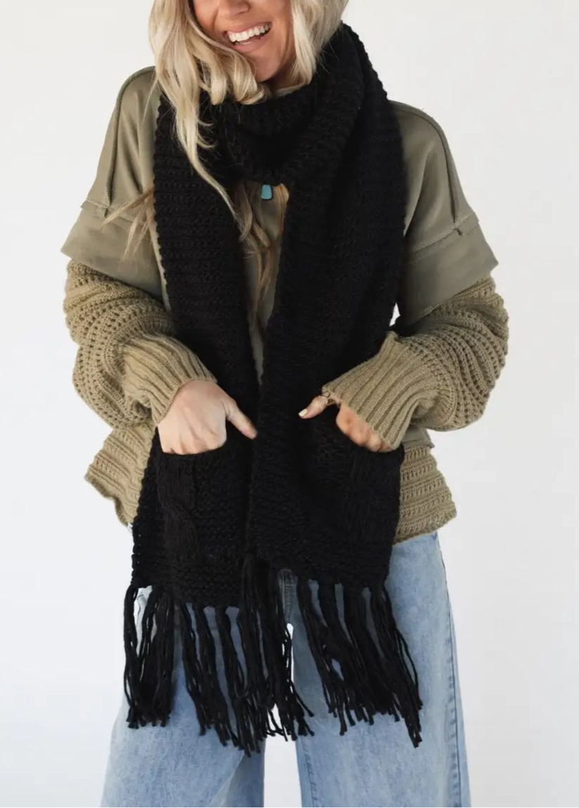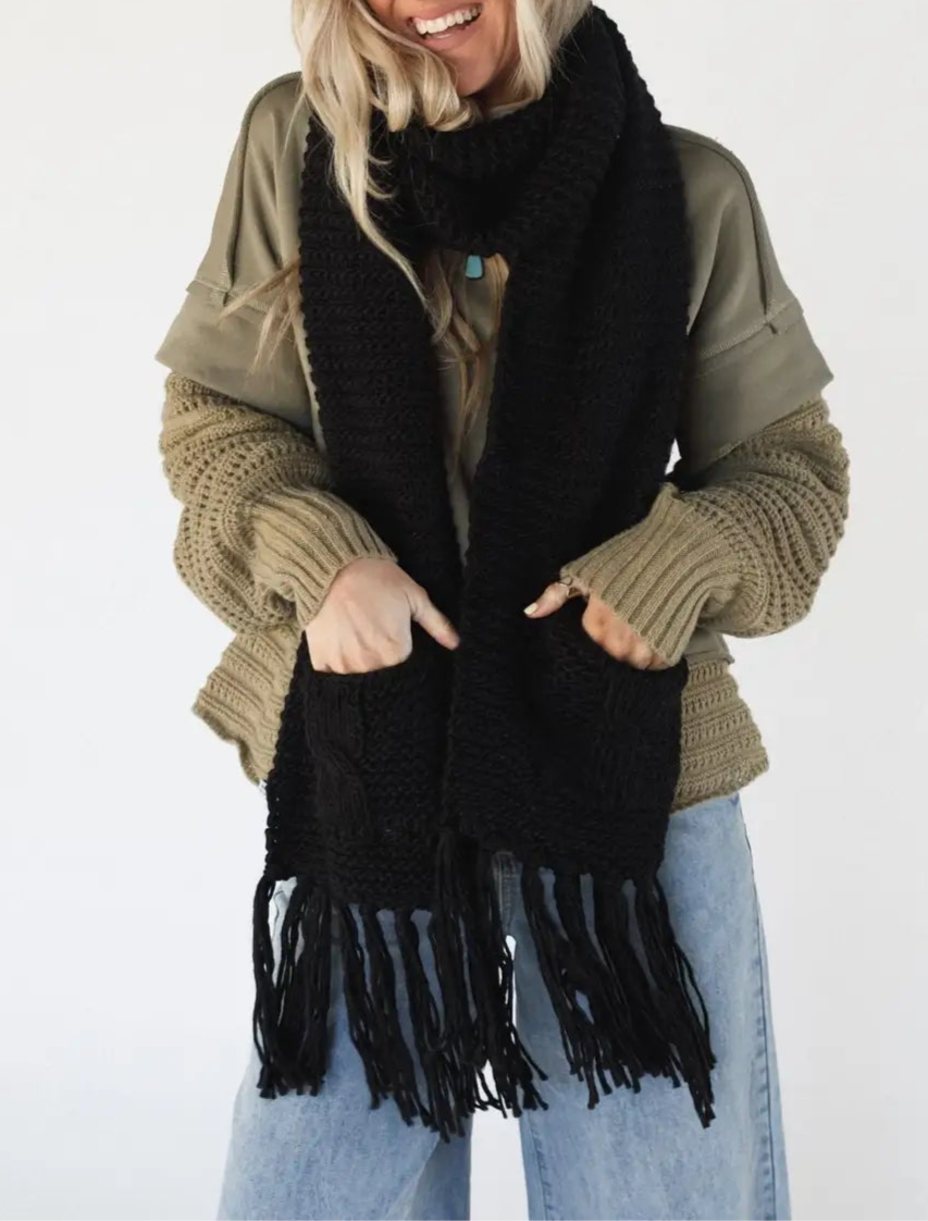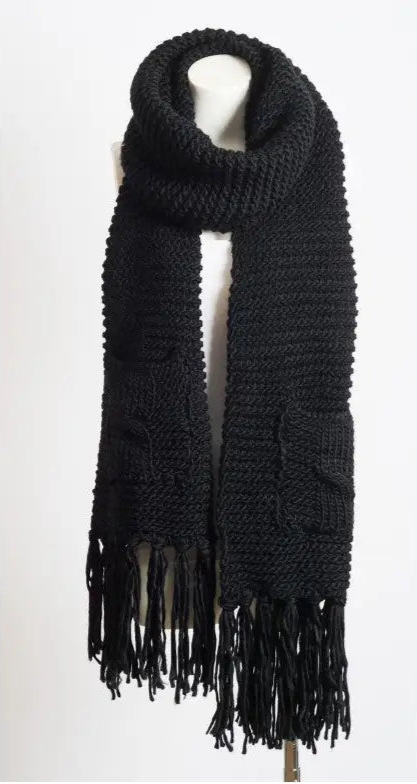 Oversized Pocket Scarf – Chunky Knit with Tassels