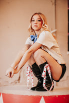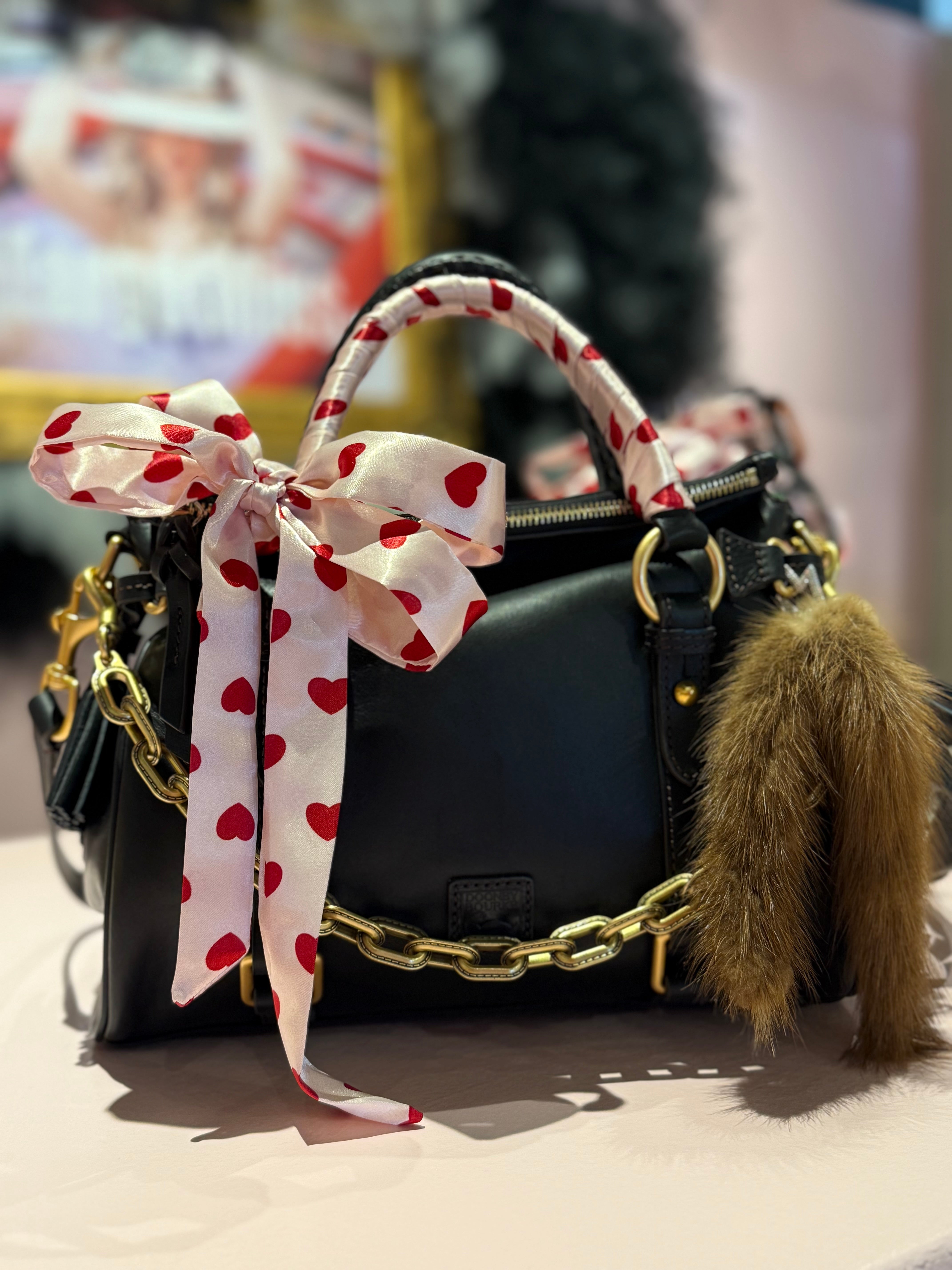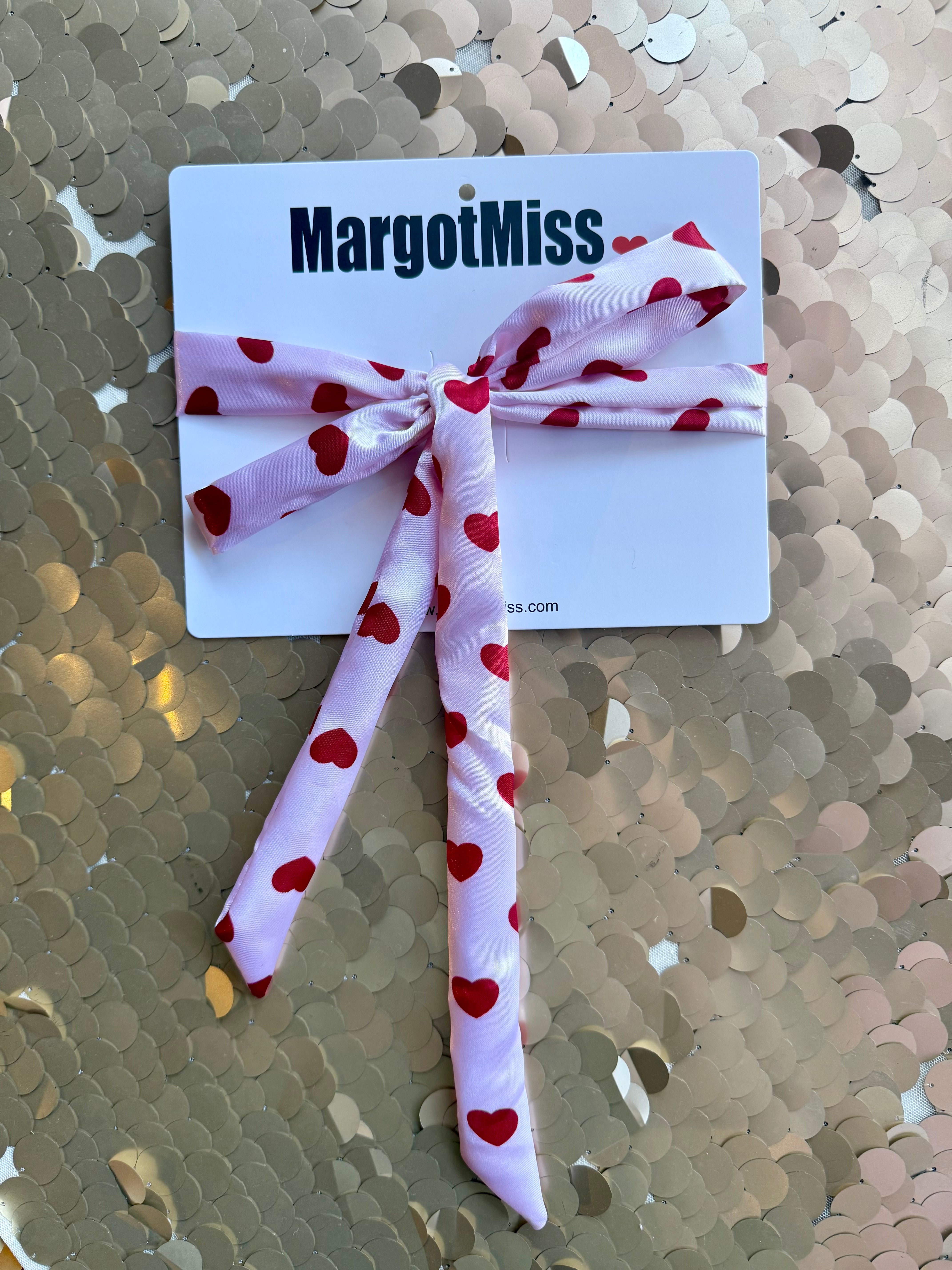 Add a playful yet elegant twist to every outfit with the MargotMiss Ice Satin Tie with Signature Red Hearts. Designed for the modern woman who loves versatility, this chic satin tie doubles as a neck scarf, handbag charm, boot accent, or hair ribbon—making it the ultimate statement accessory.