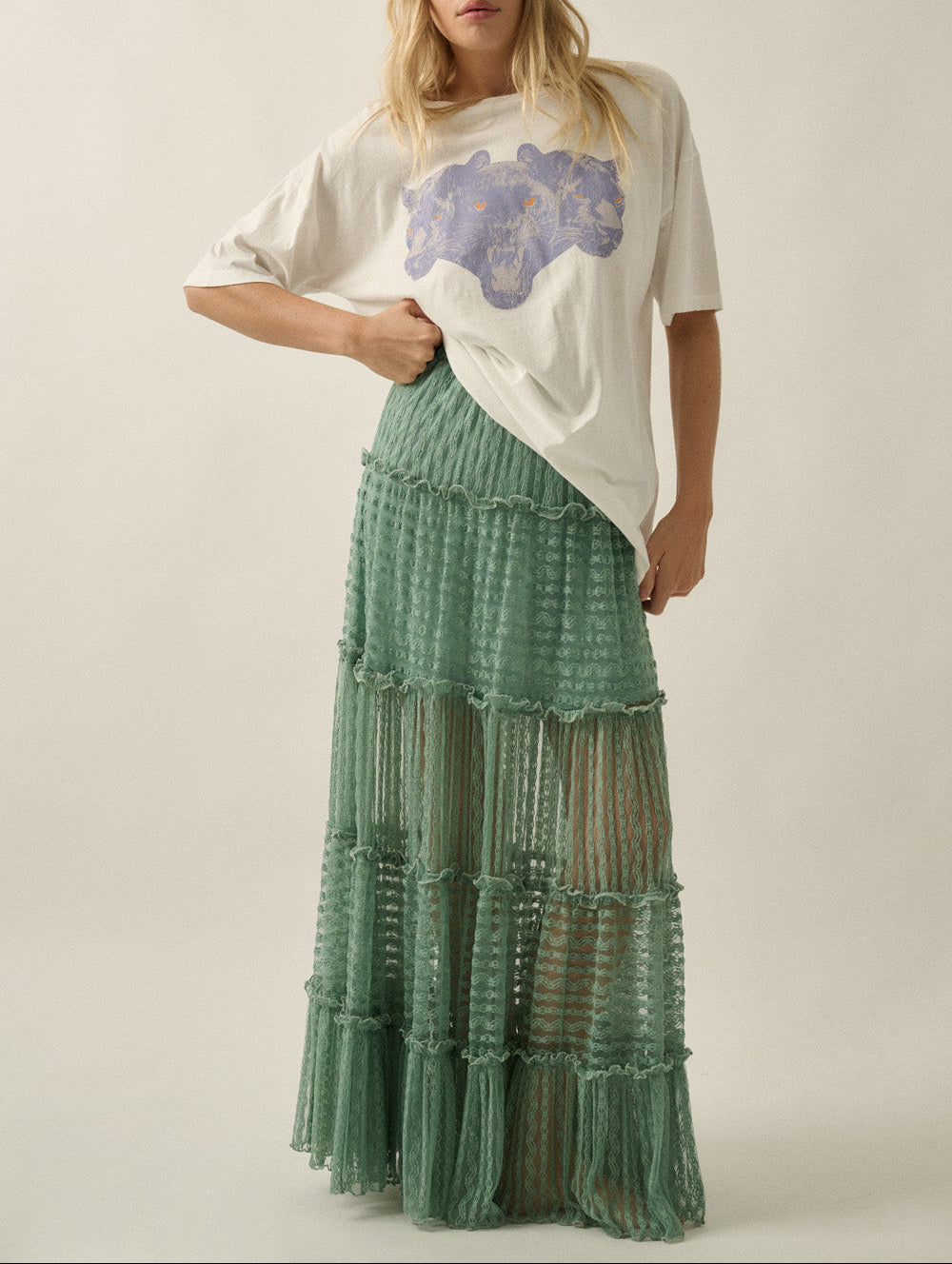 Brocade Lace Jacquard See - Through Maxi Skirt