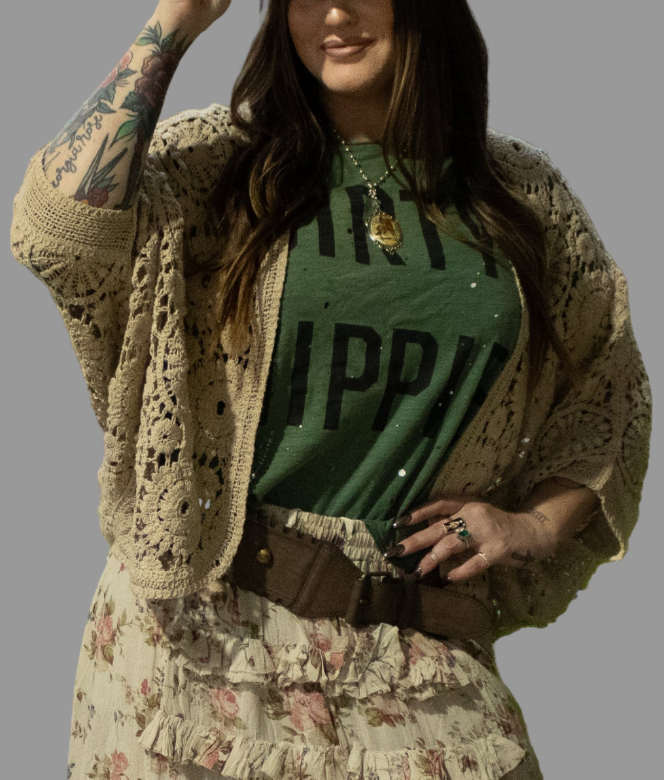Style Tip: Pair the Dirty Hippie Tee with distressed jeans, a boho mesh skirt, or the Jaded Gypsy Sweet Escape Vest for a carefree, layered look that’s full of attitude and heart.