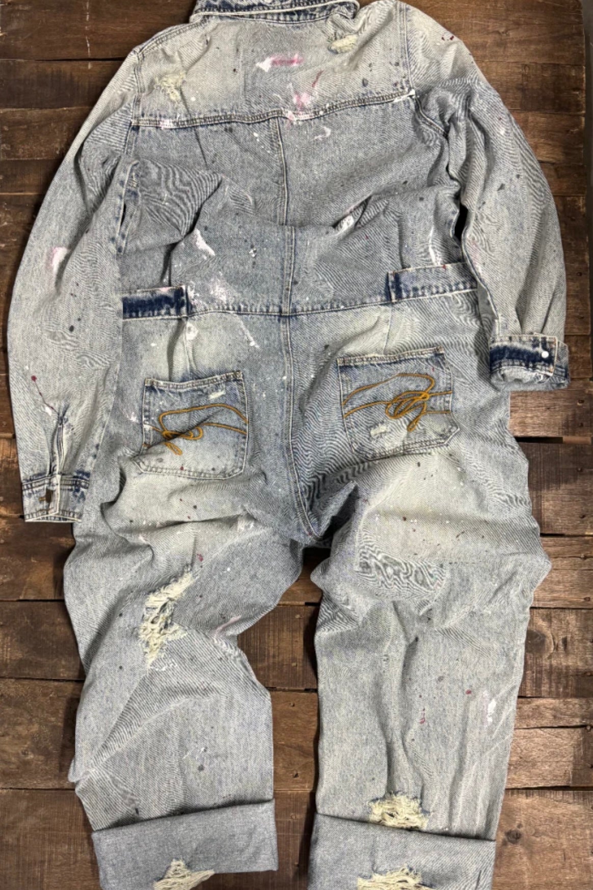Meet your new statement piece. The Jaded Gypsy Range Rider Denim Jumpsuit is a true boho dream — the perfect blend of effortless style, vintage inspiration, and artsy edge. This wide-leg denim one-piece features hand-splattered paint detailing, giving every jumpsuit a unique, lived-in, free-spirit vibe.