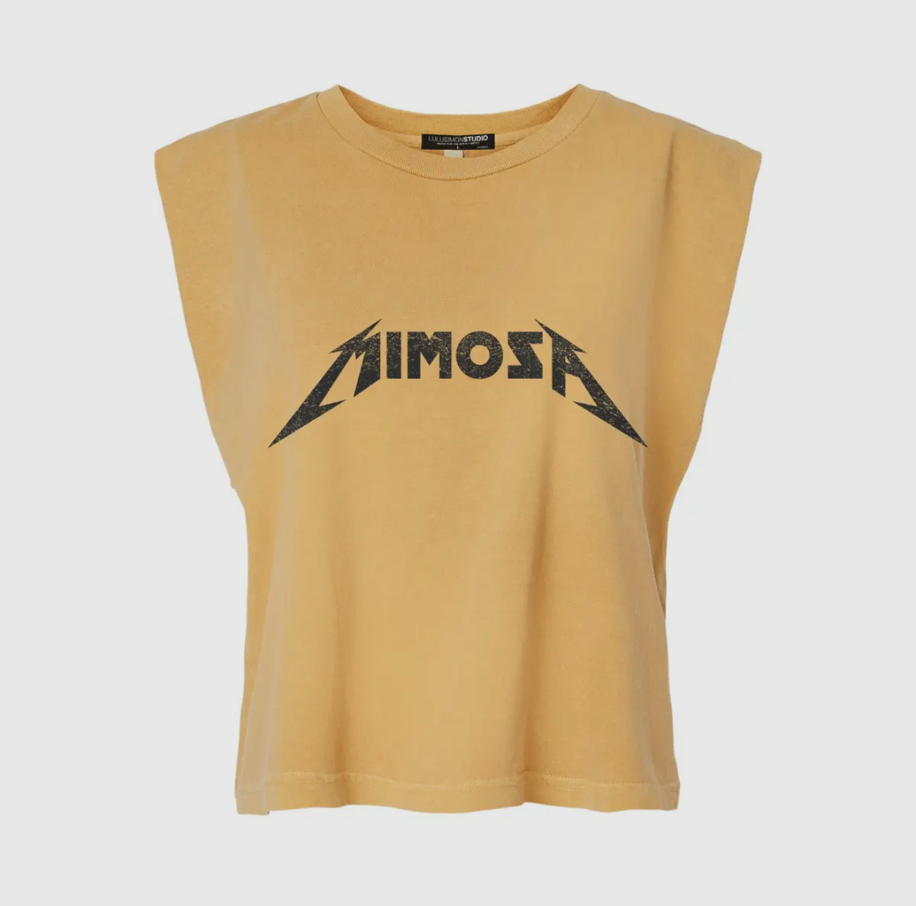Mimosa Garment-Dyed Muscle Tee – Heavyweight 100% Cotton Boxy Crop (Faded Mustard)