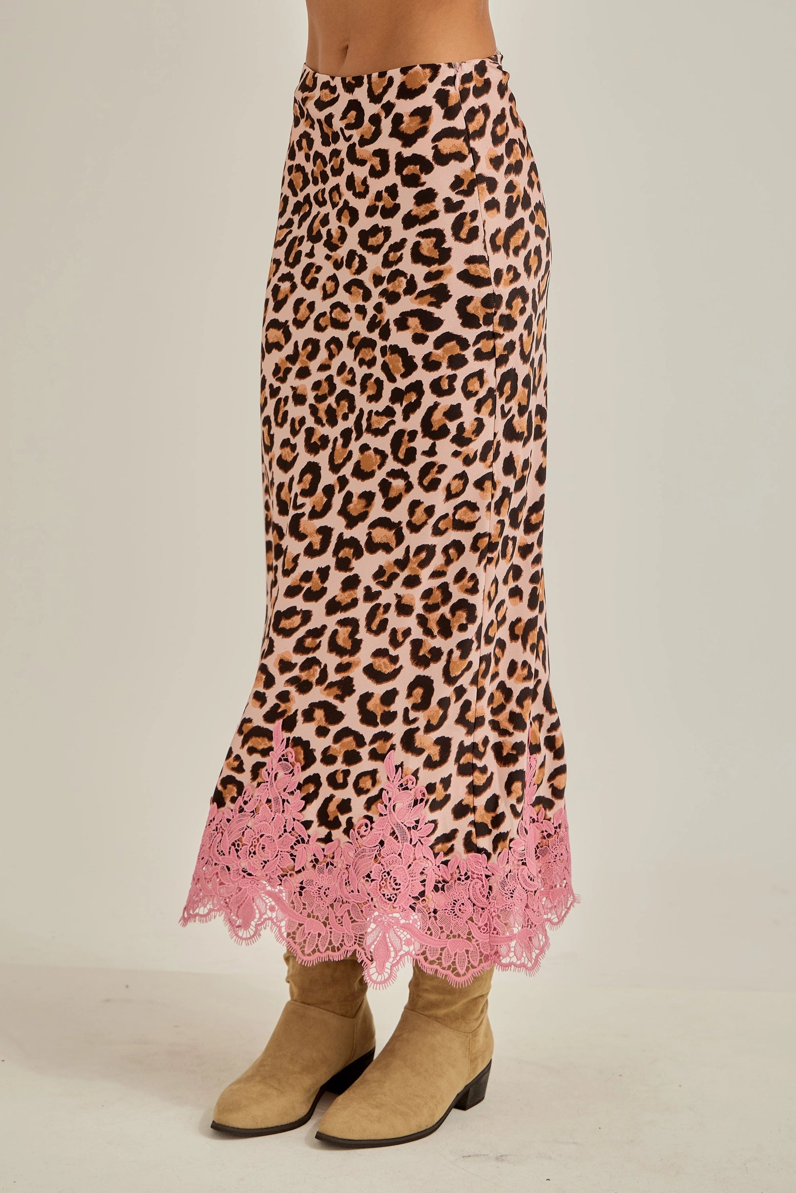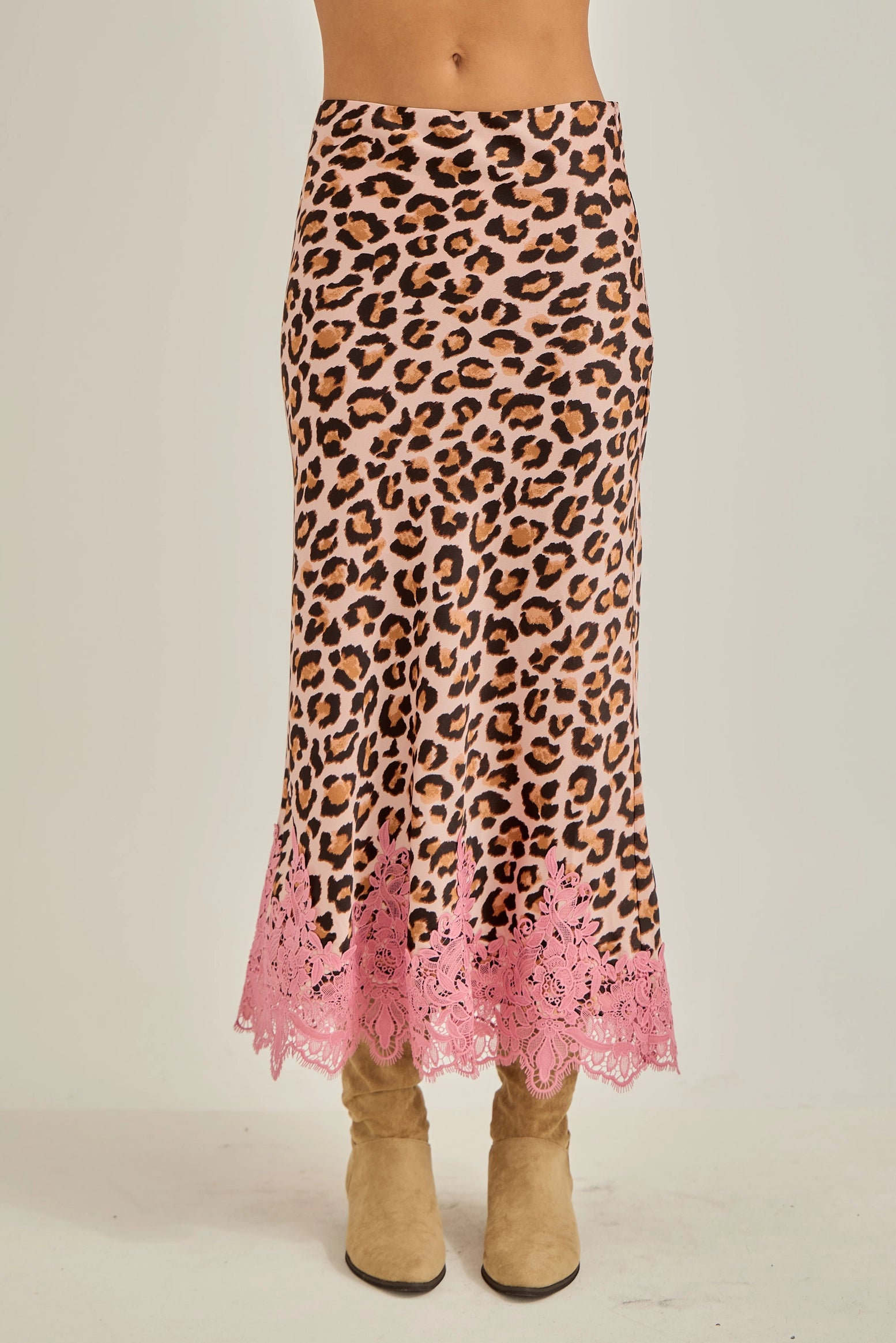 Turn heads with our Satin Leopard Fit & Flare Dress, the perfect blend of elegance and edge. Crafted from silky satin fabric, this standout piece features a bold leopard print paired with a romantic lace hemline accent for an irresistible contrast.